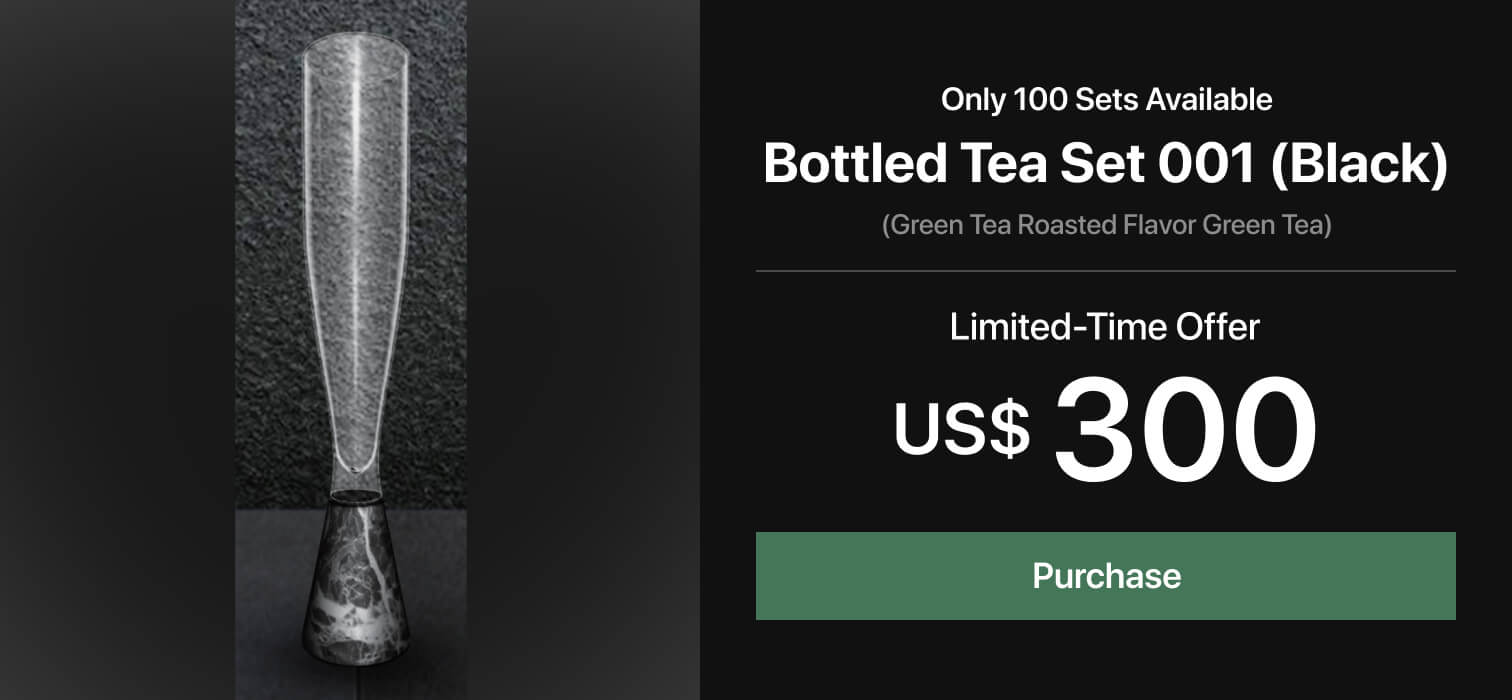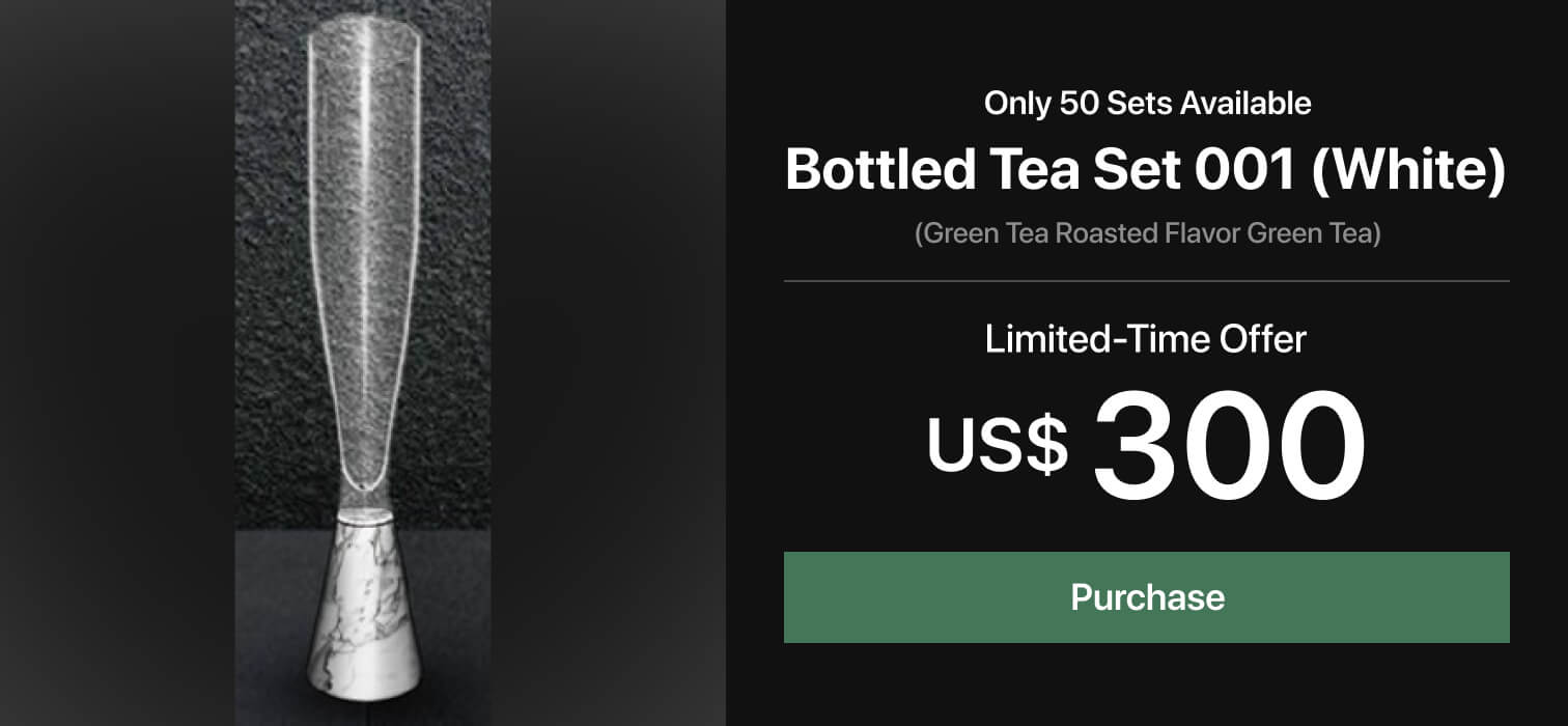 Our specialty tea glass and bottled tea [premium tea bottled and packaged like wine] We are packaging Japanese tea sencha and hojicha but no matcha for our Bottled Tea, specialty tea glass included. Our latest Bottled Tea has been in development for the past two years and is a collaborative effort between Mattea and Benefitea of Shizuoka (mentioned in the introduction). This set includes both bottles of our original additive-free Bottling Tea which is produced with the highest of standards in Japan, and one specialty Marble tea glass exclusive to backers. We use domestic high-grade tea leaves luxuriously, and two types of tea are currently available: green tea and hojicha (Rose flavor). Our Japanese tea professionals worked on these new flavors that have a different twist from the traditional Japanese tea, enjoy!